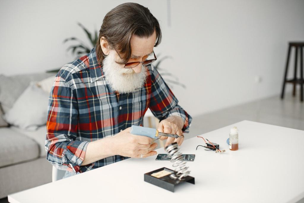 Eine stabile Versorgung schützt Bauteile. Achte auf ausreichend Strom, korrektes Spannungsniveau und Entstörung durch Kondensatoren. USB‑Power reicht oft für den Anfang, Batterien verlangen bewusstes Energiemanagement. Teile deine Erfahrungen zu Laufzeiten und Ladegewohnheiten mit anderen Einsteigern.